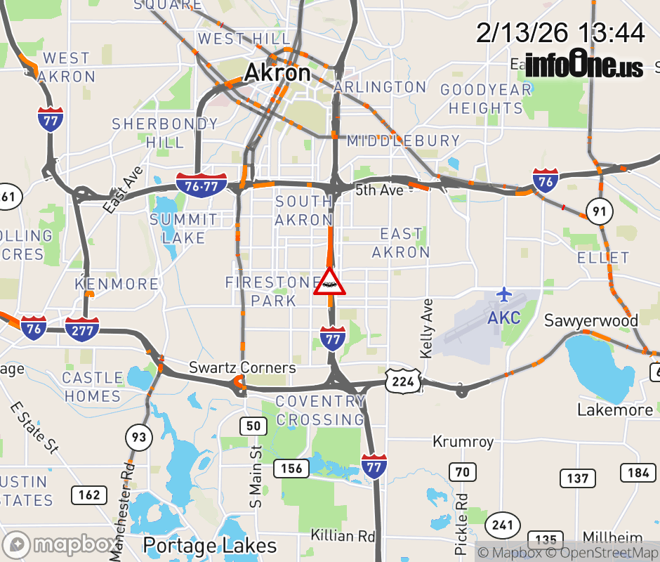 The 3 left lanes are blocked on I-77 South at SR-764/Wilbeth Rd, due to a crash. Updated: Fri 2/13/26 1:44 PM EST ![]() Updated: Fri 2/13/26 1:44 PM EST |