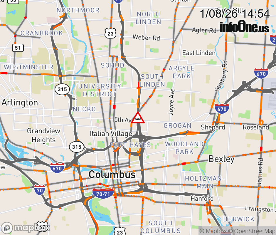 The left lane is blocked on I-71 North beyond I-670 West, due to a crash. ![]() |