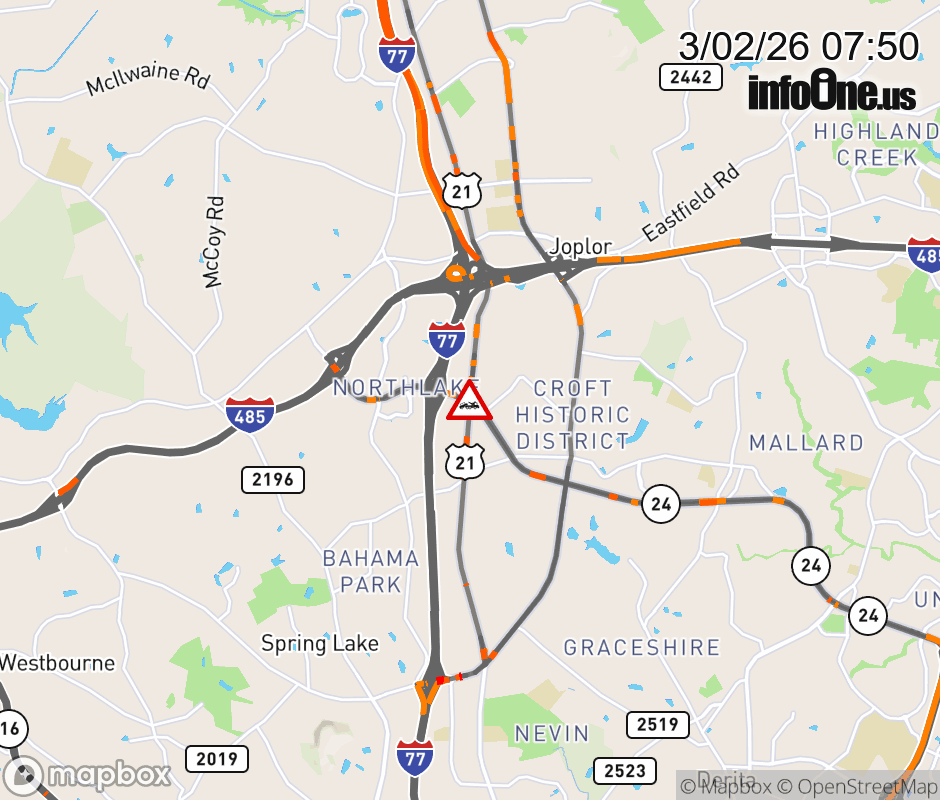 The thru lane is closed at WT Harris Blvd . ![]() |