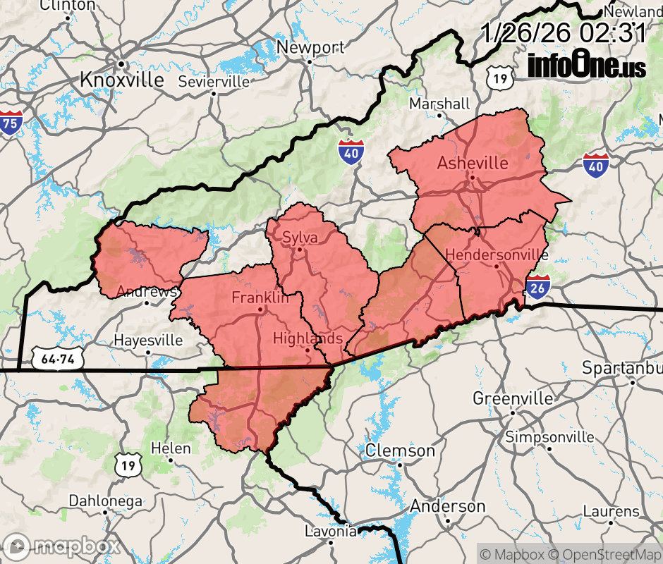Cold Weather Advisory issued January 26 at 2:29AM EST until January 27 at 12:00PM EST by NWS Greenville-Spartanburg SC * WHAT... For the first Cold Weather Advisory, very cold wind chills as low as 4 below expected. For the second Cold Weather Advisory, very cold wind chills as low as 13 below expected. * WHERE... In Georgia, Rabun County. In North Carolina, Buncombe, Graham, Henderson, Macon, Southern Jackson, and Transylvania Counties. * WHEN... For the first Cold Weather Advisory, until 10 AM EST this morning. For the second Cold Weather Advisory, from 6 PM this evening to noon EST Tuesday. * IMPACTS... The dangerously cold wind chills as low as 5 below zero could result in hypothermia or frostbite if precautions are not taken. ![]() |