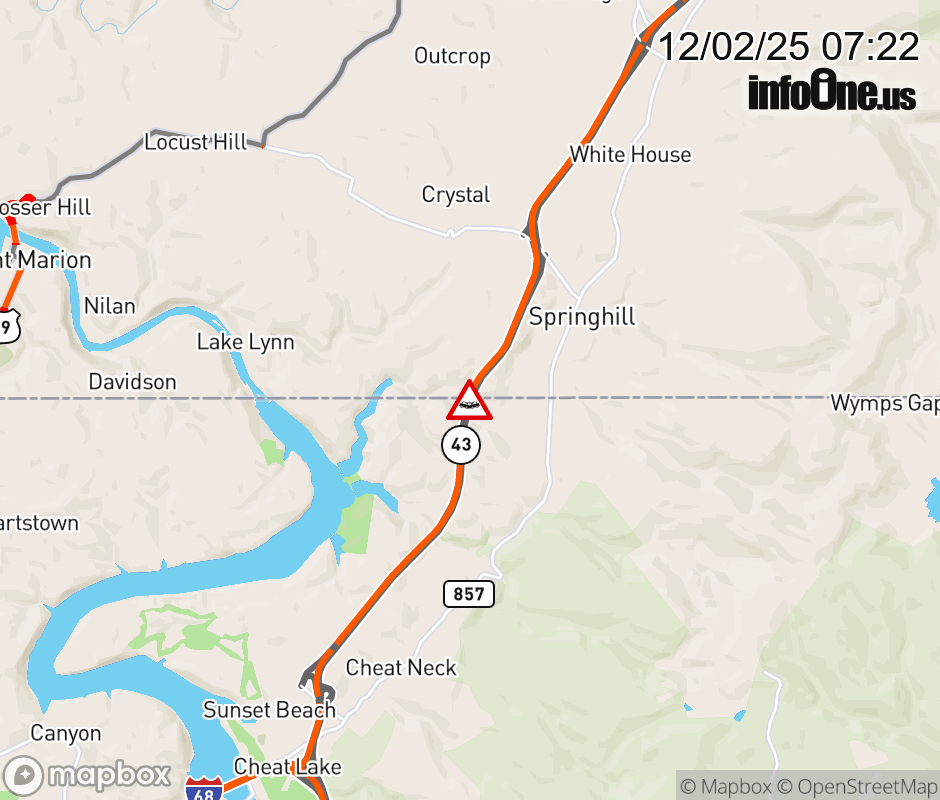 Vehicle Crash on WV-43 Mon Fayette Expressway. ![]() |