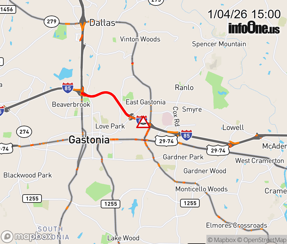 The left lane is closed before Exit 20 ( NC-279). Updated: Sun 1/4/26 3:00 PM EST ![]() Updated: Sun 1/4/26 3:00 PM EST |