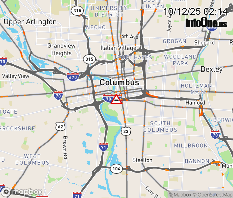 The 2 left lanes are blocked on I-70 West/I-71 South beyond I-71/I-70 Split, due to a crash. Updated: Sun 10/12/25 2:14 AM EDT ![]() Updated: Sun 10/12/25 2:14 AM EDT |