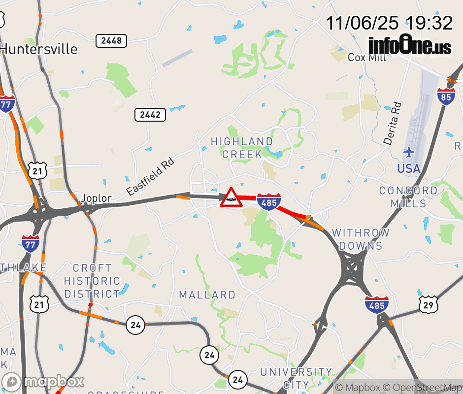 The right lane is closed prior to Exit 26 (Prosperity Ridge Rd.). Updated: Thu 11/6/25 7:32 PM EST ![]() Updated: Thu 11/6/25 7:32 PM EST |