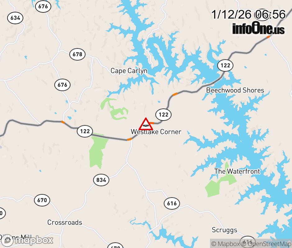 On VA-122 North in the County of Franklin, in the vicinity of Scruggs Rd; Rt. 616N/S (Franklin County); / SCRUGGS RD, motorists can expect delays due to a vehicle crash. Lane closures exist. ![]() |