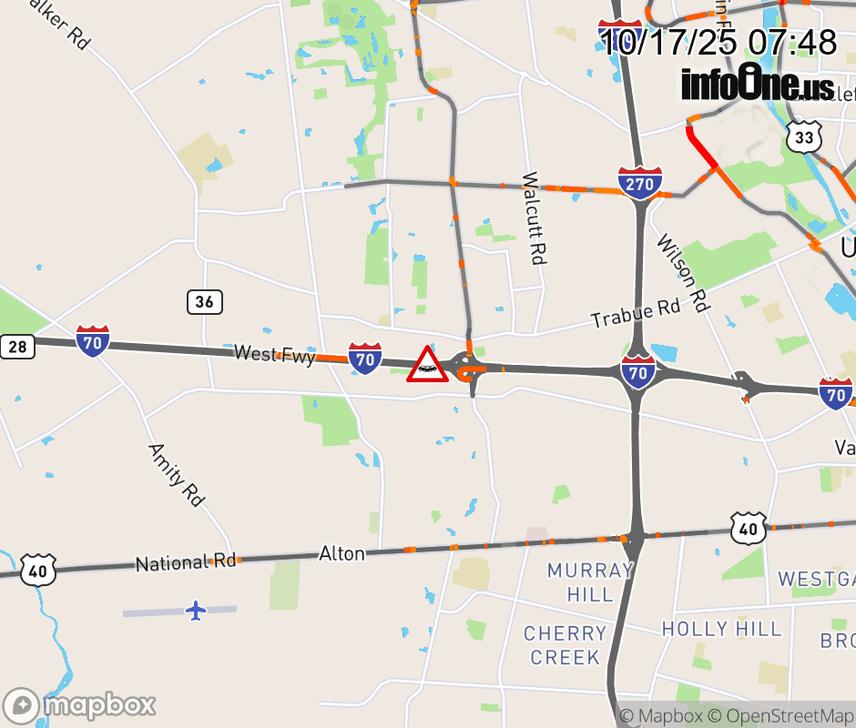 The right shoulder is blocked on I-70 West beyond Hilliard-Rome Rd South, due to a crash. Updated: Fri 10/17/25 7:48 AM EDT ![]() Updated: Fri 10/17/25 7:48 AM EDT |