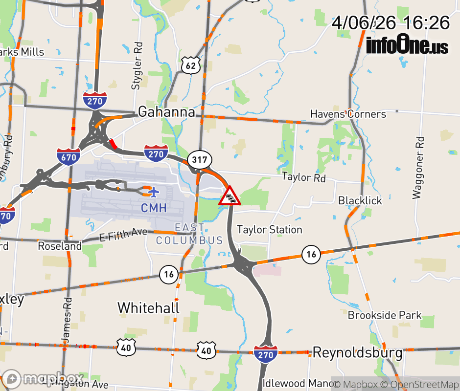 Expect lane closures on I-270 South beyond SR-317/Hamilton Rd, due to debris on roadway. ![]() |