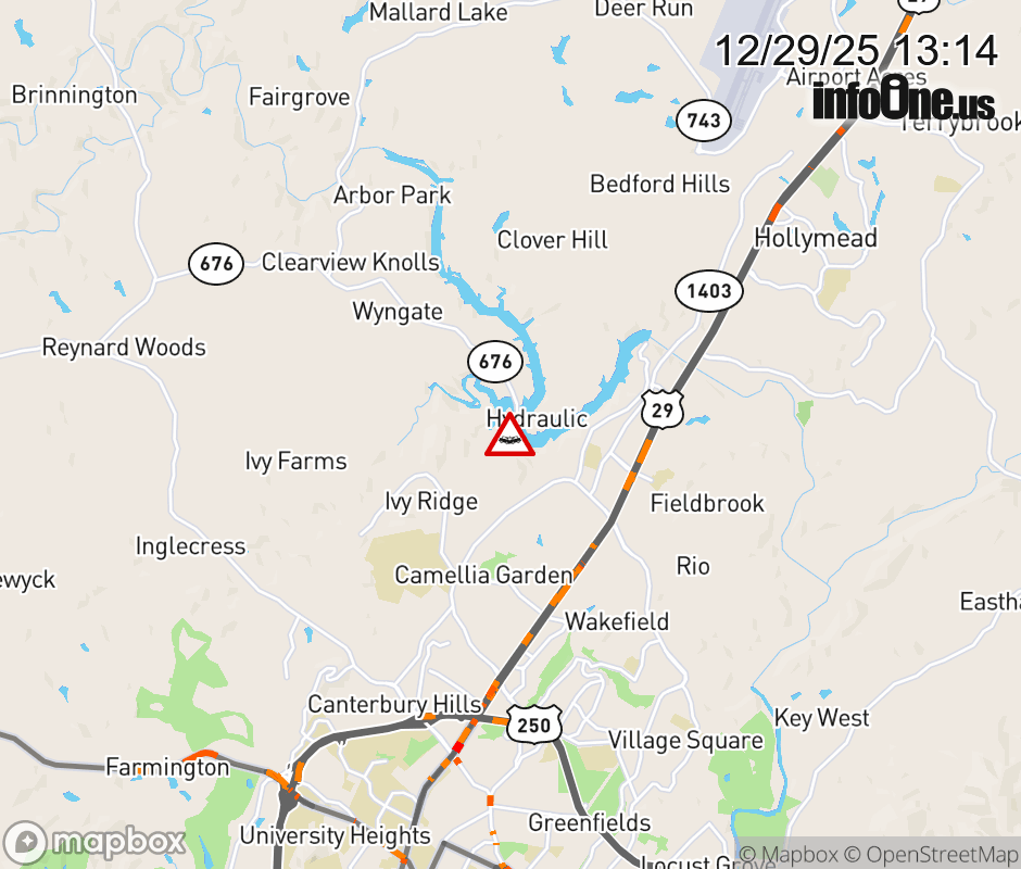 On Rt. 743 North in the County of Albemarle, in the vicinity of Woodlands Rd; Rt. 676N/S (Albemarle County), motorists can expect delays due to a vehicle crash. Updated: Mon 12/29/25 1:14 PM EST ![]() Updated: Mon 12/29/25 1:14 PM EST |