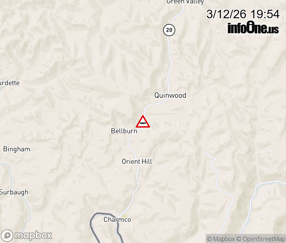 Vehicle Crash on WV-20 (3583 Coalfield Trail, Leslie). ![]() |