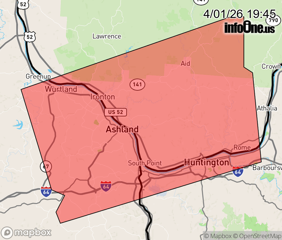 Canceled 4/1/26 8:30 PM Special Weather Statement issued April 1 at 7:43PM EDT by NWS Charleston WV At 743 PM EDT, Doppler radar was tracking a strong thunderstorm over Naples, or near Cannonsburg, moving east at 40 mph. HAZARD...Wind gusts up to 40 mph and pea size hail. SOURCE...Radar indicated. IMPACT...Gusty winds could knock down tree limbs and blow around unsecured objects. Minor hail damage to vegetation is possible. Locations impacted include... Huntington, Ashland, Ironton, Coal Grove, Chesapeake, Proctorville, Cannonsburg, Lake Vesuvius, Barboursville, Kenova, Catlettsburg, Ceredo, Greenup, Princess, Coalton, Naples, Rush, Flatwoods, South Point, and Russell. This includes the following highways... Interstate 64 in Kentucky between mile markers 181 and 191. Interstate 64 in West Virginia between mile markers 1 and 8, and between mile markers 15 and 16. ![]() |