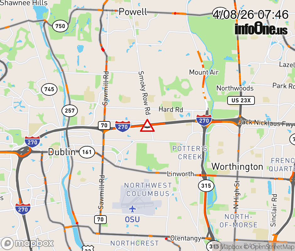 The left shoulder is blocked on I-270 East beyond Sawmill Rd, due to a crash. ![]() |
