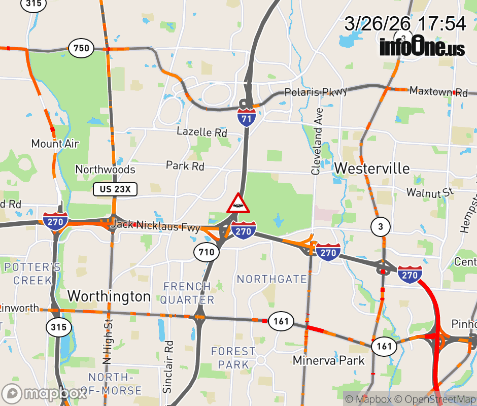 Expect lane closures on I-71 South at I-270 West (North Side), due to a crash. ![]() |