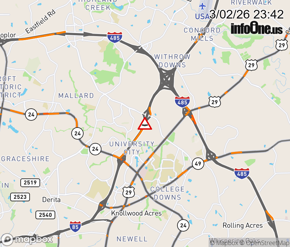 The left three lanes are closed near Exit 46 (Mallard Creek church Road) ![]() |