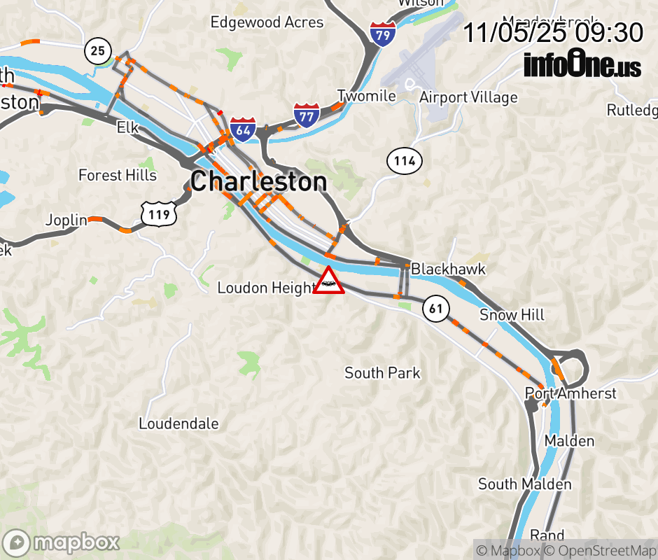 Vehicle Crash on WV-61 (MacCorkle Avenue SE at 22nd Street). ![]() |