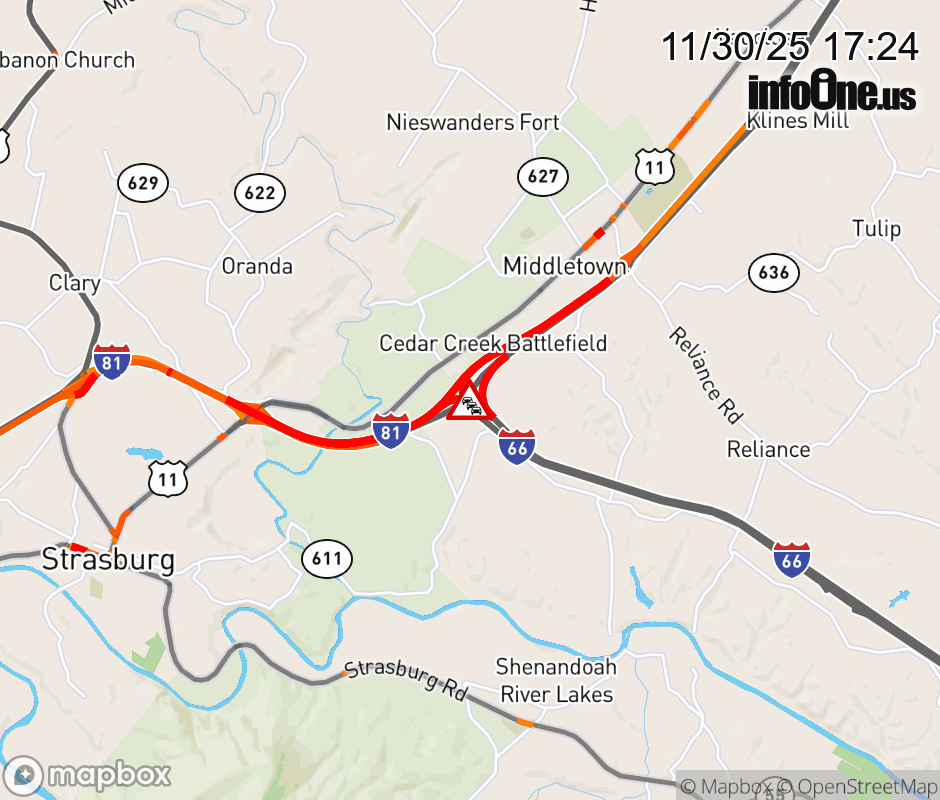 On I-66 West at mile marker 0.3 in the County of Warren, motorists can expect delays due to congestion. Updated: Sun 11/30/25 5:24 PM EST ![]() Updated: Sun 11/30/25 5:24 PM EST |