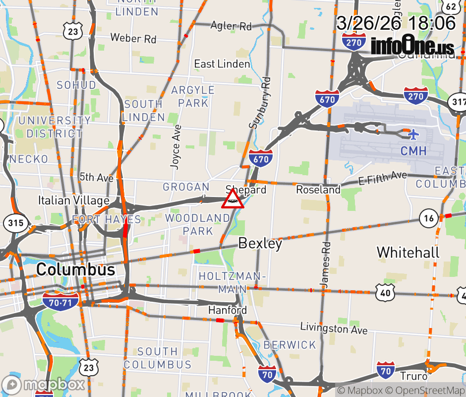 The right shoulder is blocked on I-670 West beyond US-62/Fifth Ave, due to a crash. ![]() |