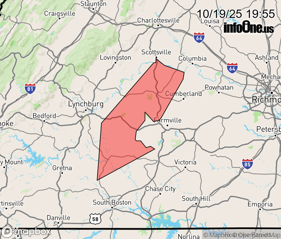 Canceled 10/19/25 8:30 PM Special Weather Statement issued October 19 at 7:54PM EDT by NWS Blacksburg VA At 753 PM EDT, Doppler radar was tracking strong thunderstorms along a line extending from near Centenary to near Andersonville to near Nathalie. Movement was northeast at 40 mph. HAZARD...Wind gusts up to 40 mph. SOURCE...Radar indicated. IMPACT...Gusty winds could knock down tree limbs and blow around unsecured objects. Locations impacted include... Buckingham... Appomattox... Brookneal... Dillwyn... Phenix... Red House... and Nathalie. ![]() |