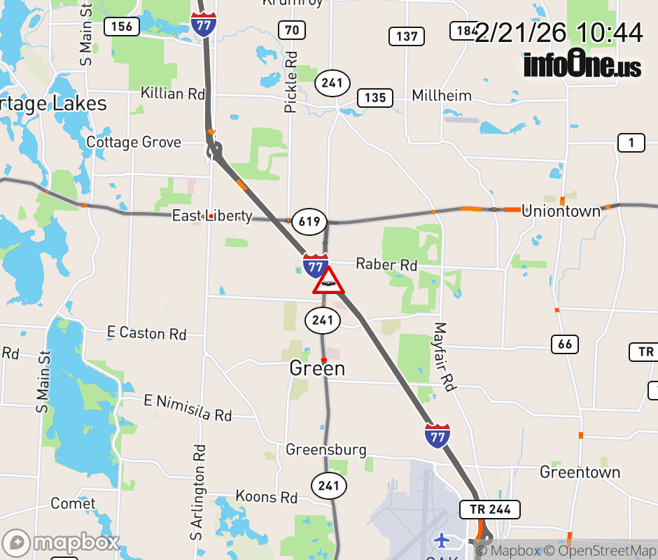 The right lane is blocked on I-77 North at SR-241/Massillon Rd, due to a crash. ![]() |