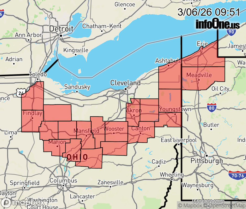 Canceled 3/6/26 10:00 AM Dense Fog Advisory issued March 6 at 9:49AM EST until March 6 at 10:00AM EST by NWS Cleveland OH While some patchy dense fog remains, visibility is generally rising across the area and will continue to do so the remainder of the morning. Motorists should continue adjusting speed and using caution when encountering patchy dense fog. ![]() |