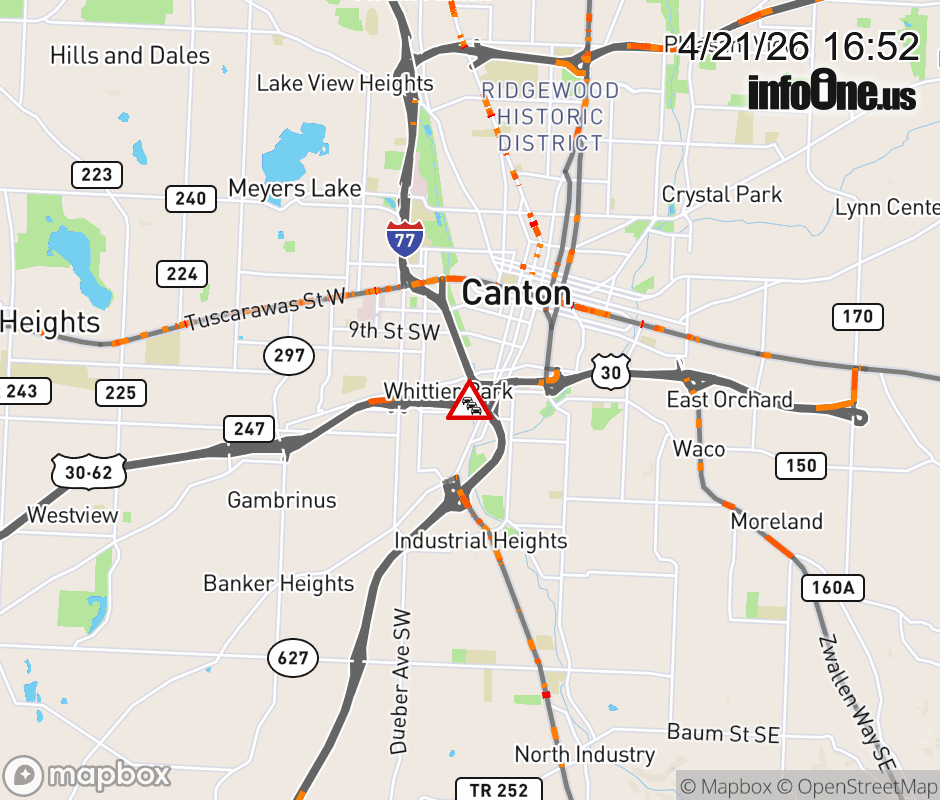 Ramp I-77 South/US-62 West to US-30 East CLOSED because of repairs/maintenance. ![]() |