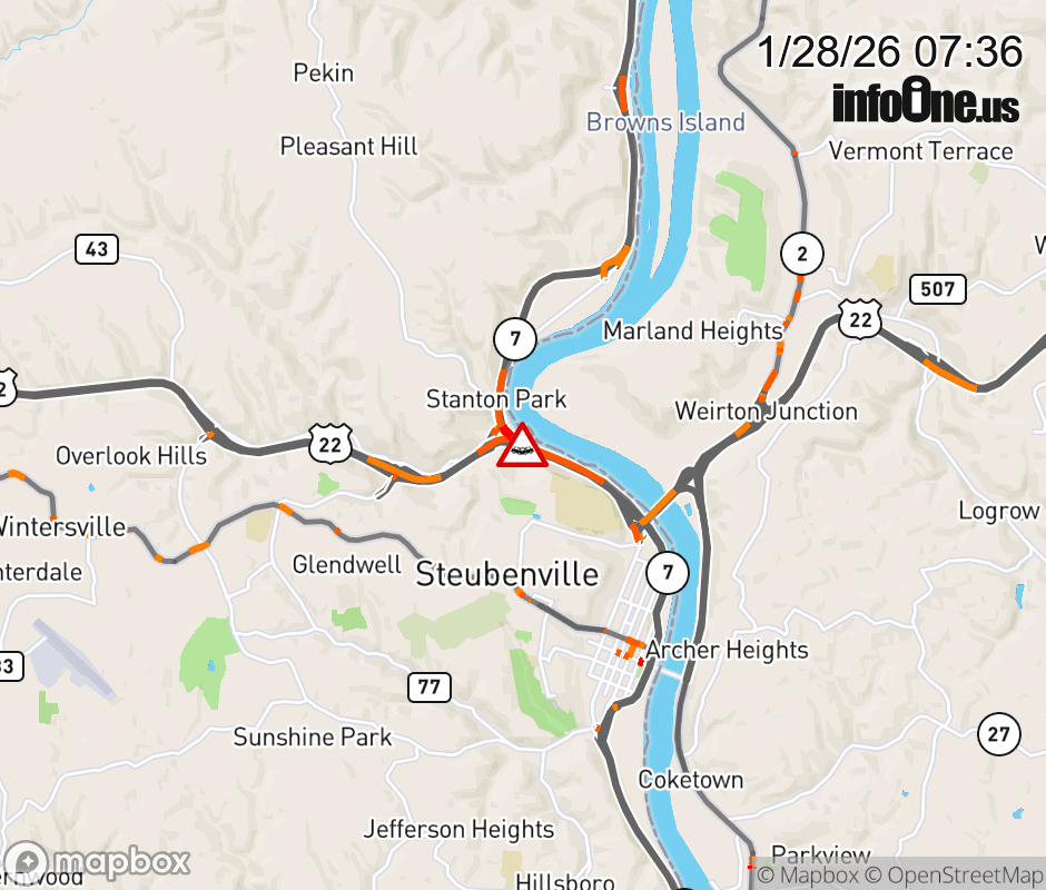 The right lane is closed on US-22 West beyond SR-7, due to a crash. Updated: Wed 1/28/26 7:36 AM EST ![]() Updated: Wed 1/28/26 7:36 AM EST |