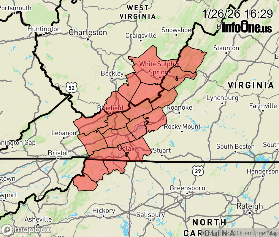 Canceled 1/27/26 2:30 AM Special Weather Statement issued January 26 at 4:28PM EST by NWS Blacksburg VA Snow showers will continue to bring light snow accumulations of up to a half inch to an inch or so to the western mountains of North Carolina and Virginia, as well as the Greenbrier Valley in West Virginia this evening. Areas that are directly on the upslope side of the mountains may see slightly higher values than the 1 inch mentioned above. Be prepared for slick spots on untreated roads, particularly on bridges and overpasses. Please allow extra time to reach your destination. ![]() |
