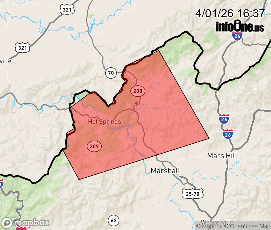 Canceled 4/1/26 5:15 PM Special Weather Statement issued April 1 at 4:36PM EDT by NWS Greenville-Spartanburg SC At 436 PM EDT, Doppler radar was tracking a strong thunderstorm 9 miles northwest of Marshall, or near Hot Springs, moving northeast at 15 mph. HAZARD...Wind gusts up to 40 mph and penny size hail. SOURCE...Radar indicated. IMPACT...Gusty winds could knock down tree limbs and blow around unsecured objects. Minor hail damage to outdoor objects is possible. Locations impacted include... Hot Springs, Spring Creek, Allenstand, and Walnut. ![]() |