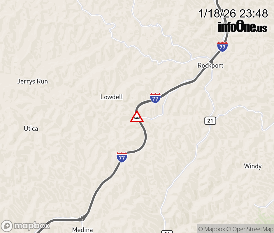 Vehicle Crash on I-77N at Mile Marker 158.5. The northbound road is closed. Updated: Sun 1/18/26 11:48 PM EST ![]() Updated: Sun 1/18/26 11:48 PM EST |