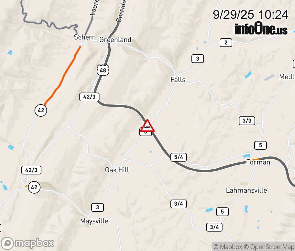 Canceled 9/29/25 11:50 AM Location: US-48 at MM 15.0, WV Accident.