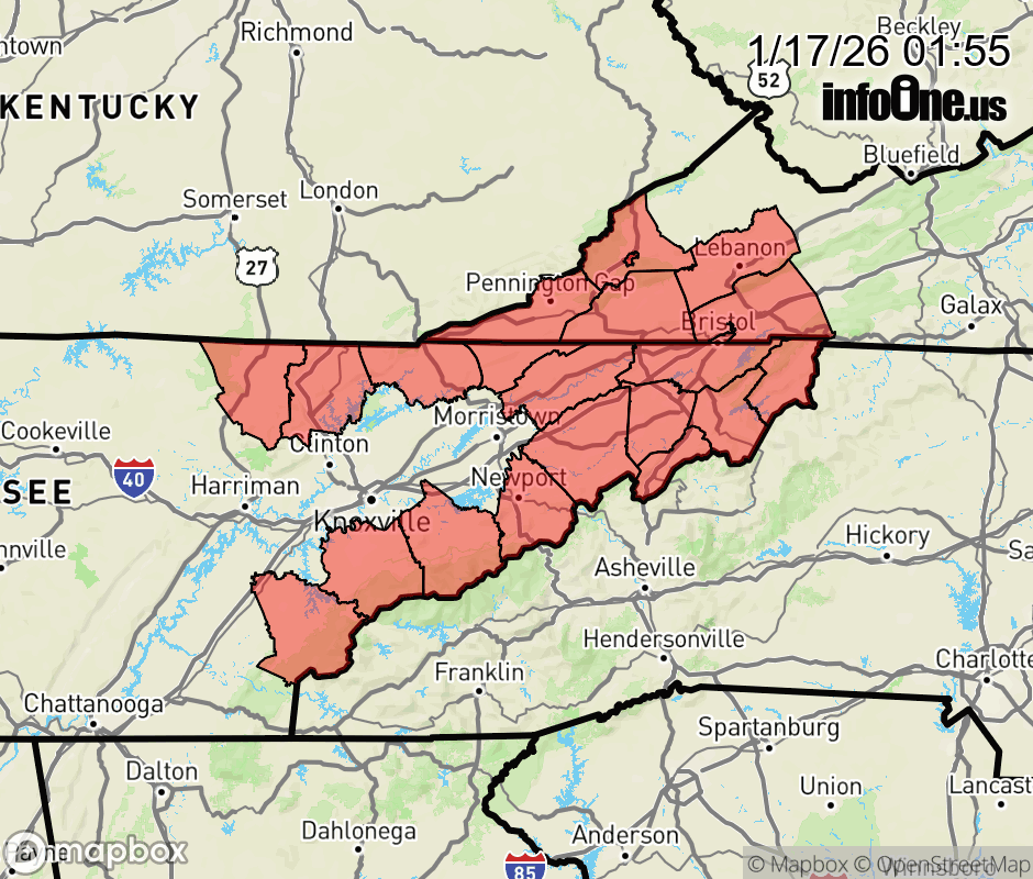 Canceled 1/17/26 10:00 AM Special Weather Statement issued January 17 at 1:54AM EST by NWS Morristown TN Periods of light to moderate snow showers will lead to a quick 1 to 2 inches of accumulation in some locations Saturday morning. The most likely locations to receive snow accumulation will be elevations above 2000 feet. Highest mountain peaks could see isolated totals near 3 inches. A dusting up to one inch will be possible in lower elevations of southwest Virginia and northeast Tennessee. Any accumulations of snow are expected to be light. However, driving and walking may be difficult on some untreated roadways and sidewalks. Be prepared for slippery roads and limited visibilities. If traveling, slow down and allow extra time to reach your destination. ![]() |