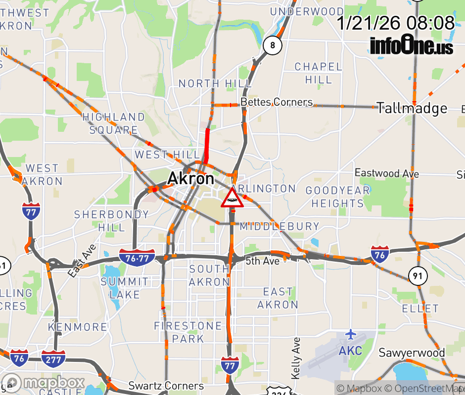 The right shoulder is blocked on SR-8 North at SR-59 West/Perkins St, due to a crash. Updated: Wed 1/21/26 8:08 AM EST ![]() Updated: Wed 1/21/26 8:08 AM EST |
