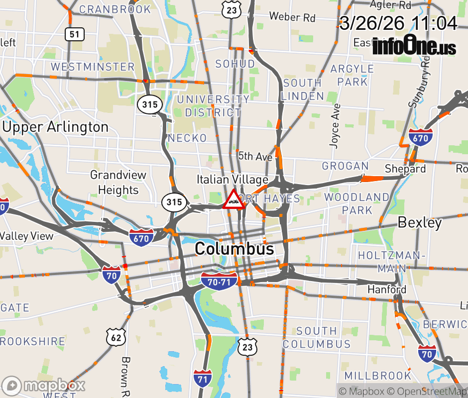 The right shoulder is blocked on I-670 West beyond US 23 North/Fourth St, due to a disabled vehicle. ![]() |