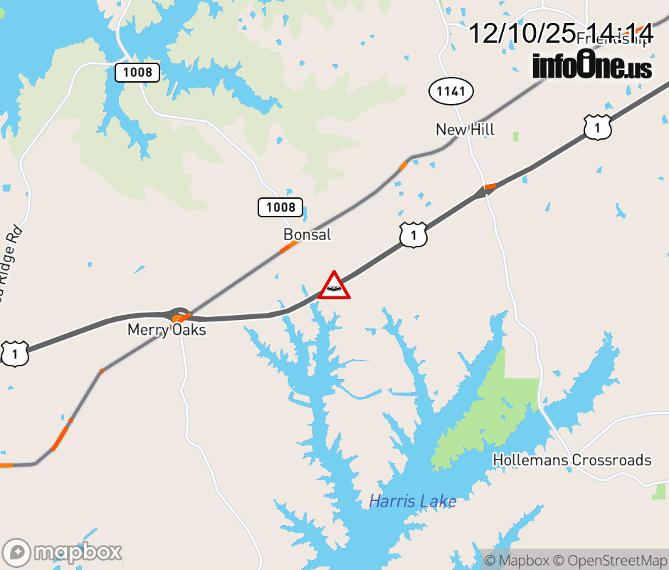 The right shoulder is closed 2 miles past Exit 89 (New Hill Holleman Rd) Updated: Wed 12/10/25 2:14 PM EST ![]() Updated: Wed 12/10/25 2:14 PM EST |