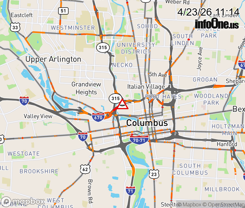 The 2 left lanes are blocked on I-670 East at Neil Ave, due to a crash. Updated: Thu 4/23/26 11:14 AM EDT ![]() Updated: Thu 4/23/26 11:14 AM EDT |