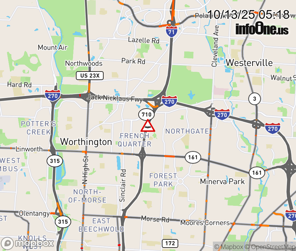 The right shoulder is blocked on I-71 North beyond SR-161/Dublin Granville Rd, due to a crash. Updated: Mon 10/13/25 5:18 AM EDT ![]() |