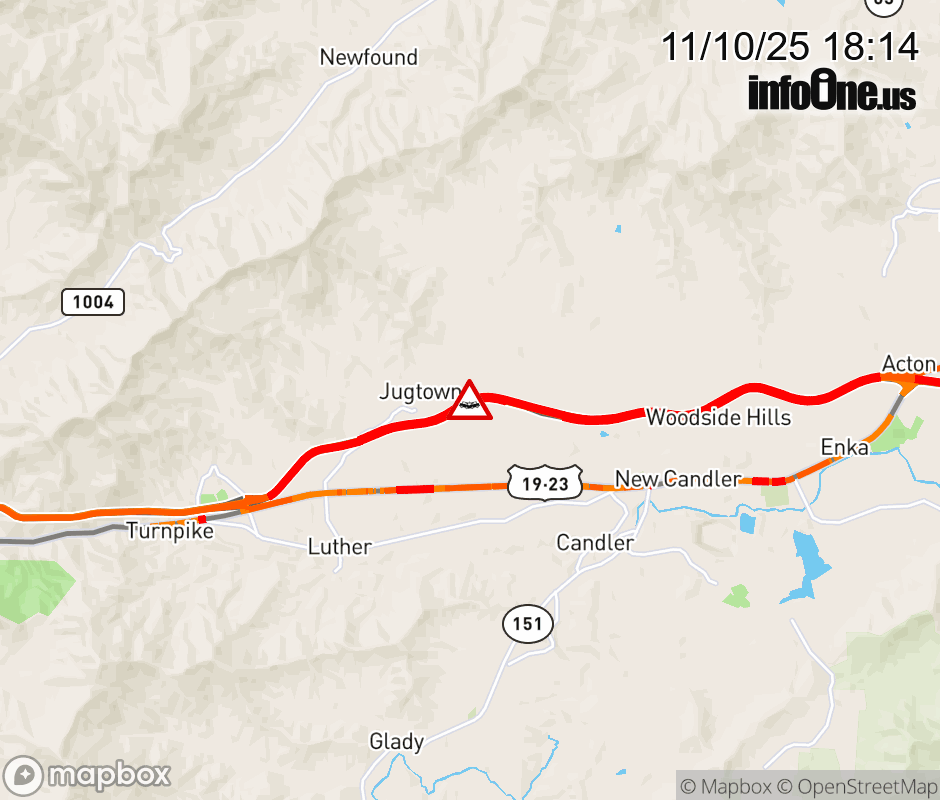 The right shoulder has reopened 3.5 miles past Exit 44, US 19 (Smokey Park Highway). Updated: Mon 11/10/25 6:14 PM EST ![]() Updated: Mon 11/10/25 6:14 PM EST |