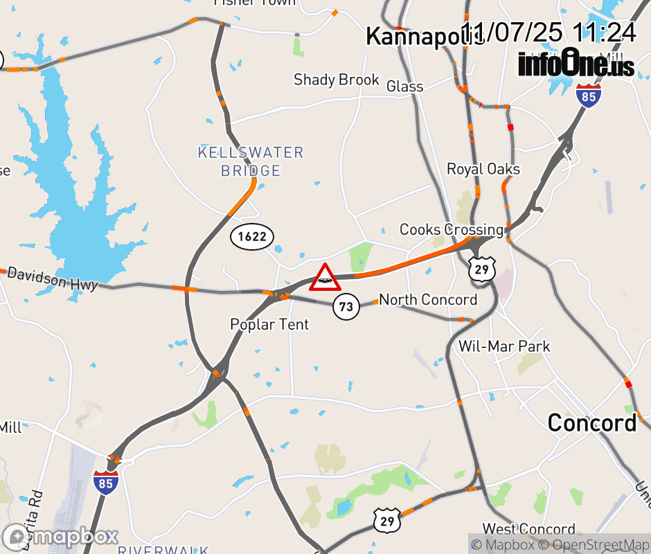 The right lane is closed before Exit 55 (NC 73). ![]() |