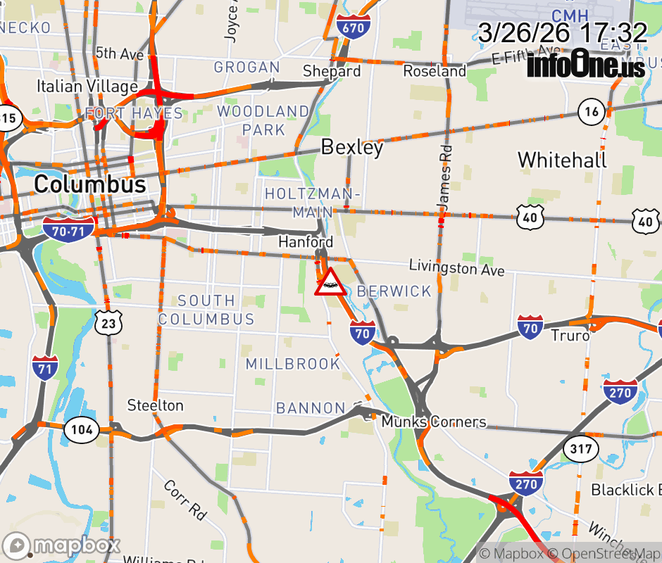 The right shoulder is blocked on I-70 East at Alum Creek Dr/Livingston Ave, due to a crash. ![]() |