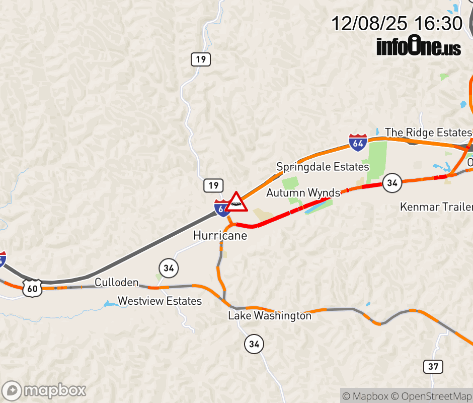 Canceled 12/8/25 6:12 PM Location: I-64 at MM 34.0, WV Accident.