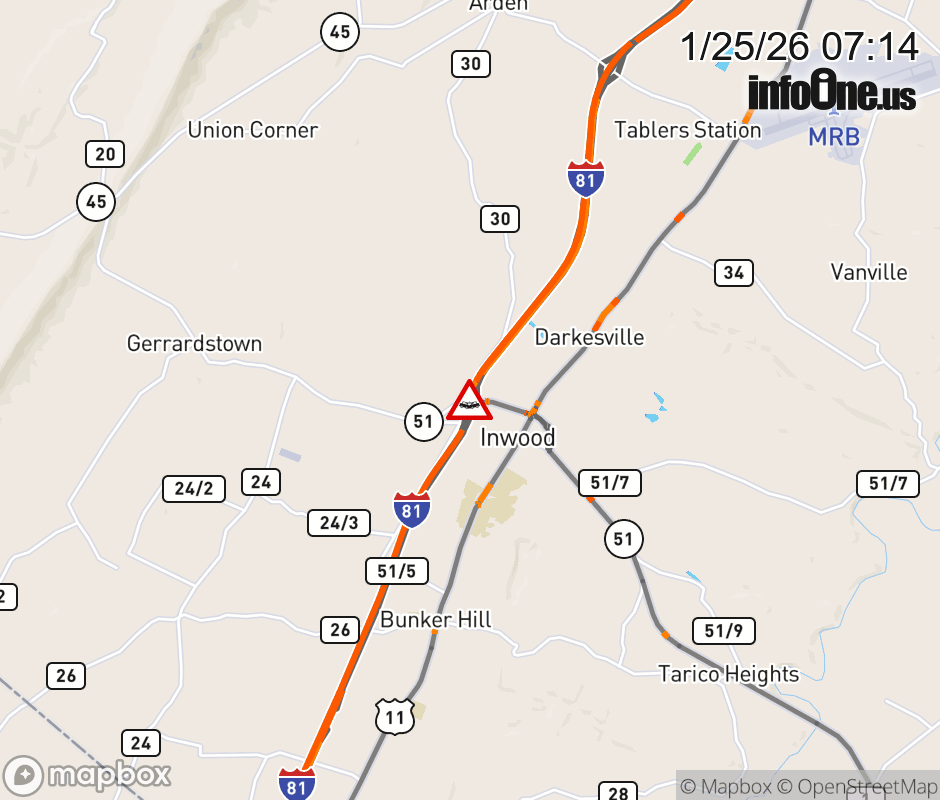 Canceled 1/25/26 7:18 AM Location: I-81 at MM 5.0, WV Accident.