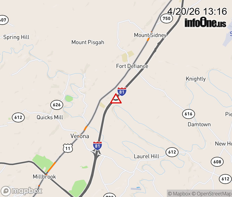 On I-81 North at mile marker 229.7 in the County of Augusta, motorists can expect delays due to a vehicle crash. Updated: Mon 4/20/26 1:16 PM EDT ![]() Updated: Mon 4/20/26 1:16 PM EDT |