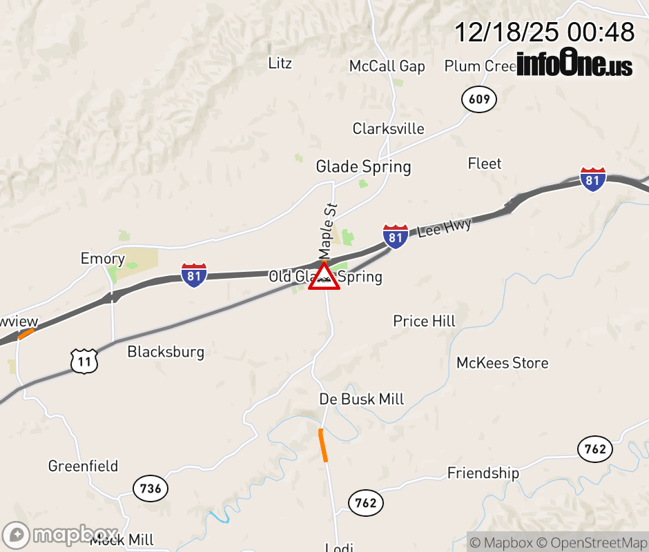 On US-11 North in the County of Washington, in the vicinity of Maple St; Monroe Rd; VA-91N/S, motorists can expect delays due to a disabled tractor trailer. Lane closures exist. Updated: Thu 12/18/25 12:48 AM EST ![]() Updated: Thu 12/18/25 12:48 AM EST |