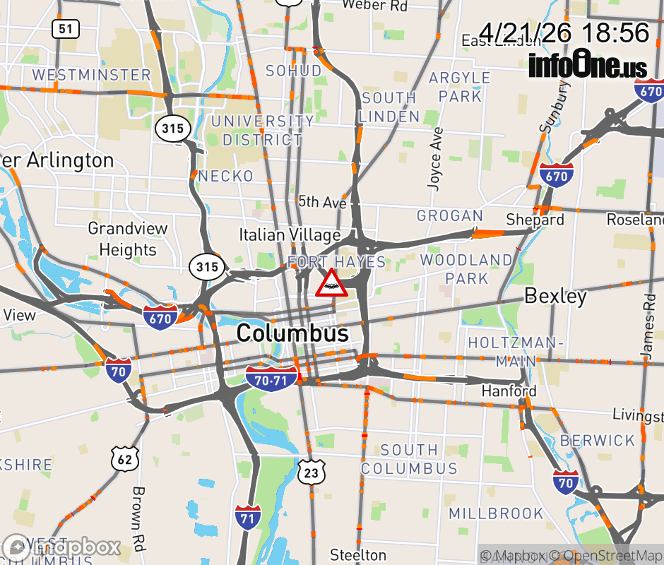 Ramp I-670 East to Cleveland Ave CLOSED because of a crash. Updated: Tue 4/21/26 6:56 PM EDT ![]() Updated: Tue 4/21/26 6:56 PM EDT |