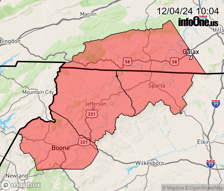 Canceled 12/4/24 7:03 PM High Wind Warning issued December 4 at 10:02AM EST until December 5 at 4:00PM EST by NWS Blacksburg VA * WHAT... West winds 25 to 35 mph with gusts up to 60 mph expected. * WHERE... In North Carolina, Alleghany NC, Ashe, and Watauga Counties. In Virginia, Grayson County. * WHEN... From 7 PM this evening to 4 PM EST Thursday. * IMPACTS... Damaging winds will blow down trees and power lines. Widespread power outages are expected. Travel will be difficult, especially for high profile vehicles. ![]() |