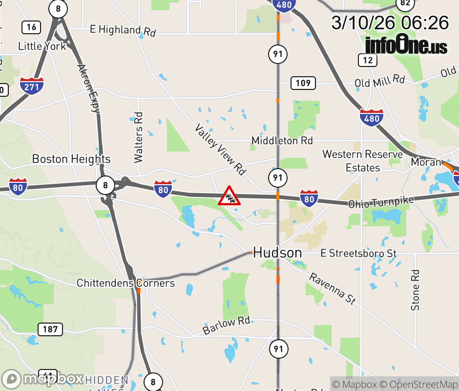 Expect lane closures on I-80 West (Ohio Turnpike) beyond I-480/SR-14, due to a fire. ![]() |