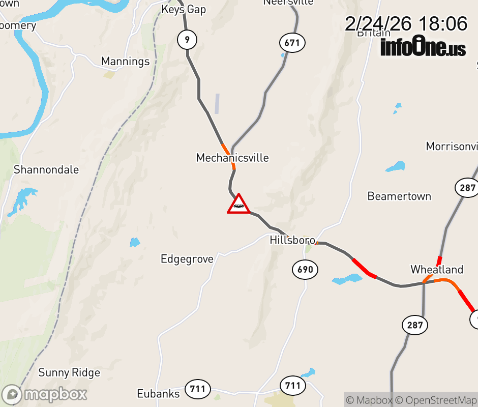 On VA-9 in the County of Loudoun, in the vicinity of Cider Mill Rd; Rt. 751N/S (Loudoun County), motorists can expect delays due to a vehicle crash. All east lanes are closed. Traffic backups are approximately 4.0 miles. Updated: Tue 2/24/26 6:06 PM EST ![]() Updated: Tue 2/24/26 6:06 PM EST |