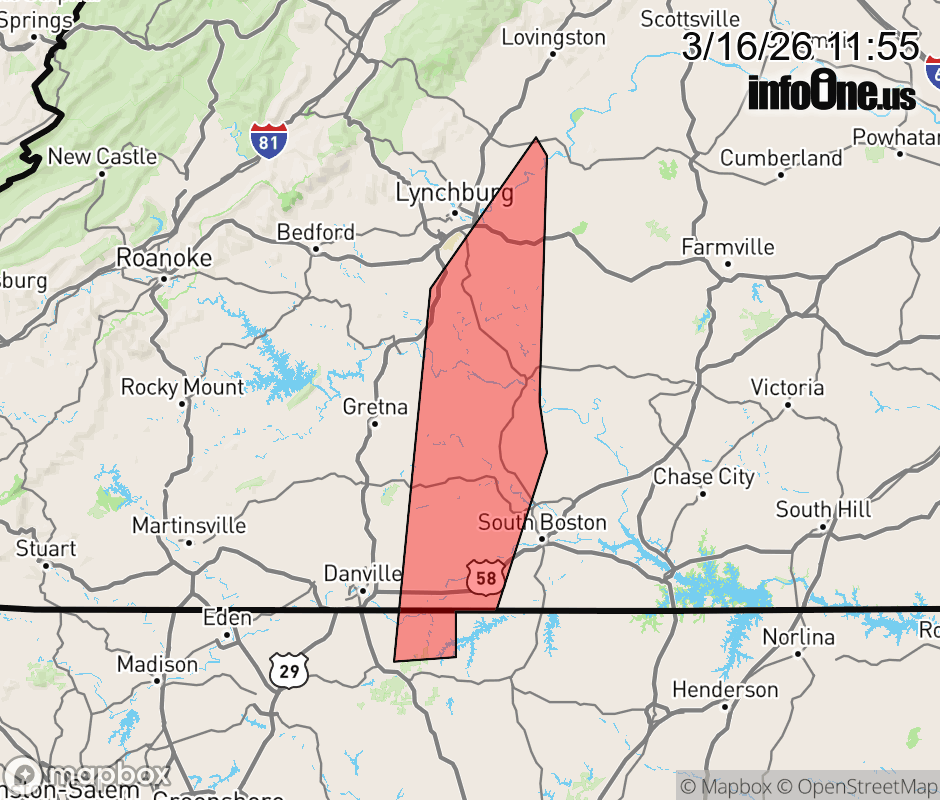 Canceled 3/16/26 12:13 PM Severe Thunderstorm Warning issued March 16 at 11:54AM EDT until March 16 at 12:15PM EDT by NWS Blacksburg VA At 1153 AM EDT, severe thunderstorms were located along a line extending from near Wingina to near Nathalie to Crystal Hill, moving northeast at 45 mph. HAZARD...60 mph wind gusts. SOURCE...Radar indicated. IMPACT...Expect damage to roofs, siding, and trees. Locations impacted include... Halifax... Brookneal... Turbeville... Ingram... Mt Airy... Concord... and Rustburg. ![]() |
