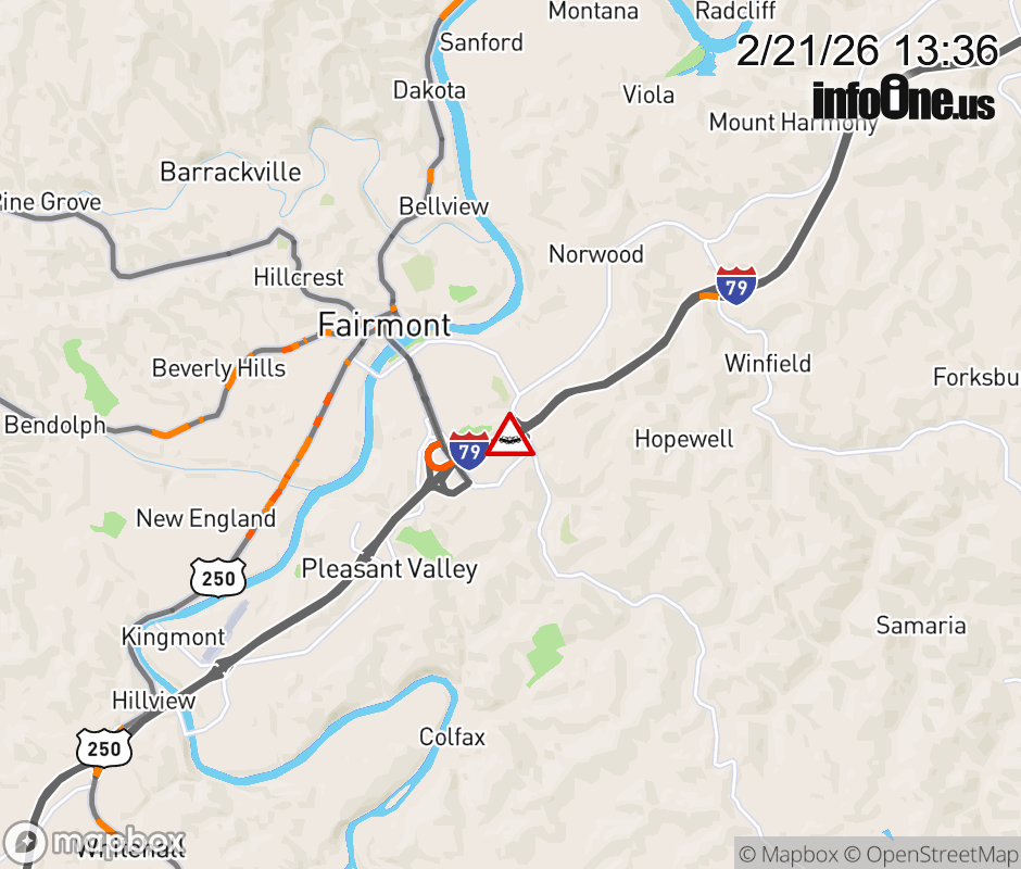 Location: I-79 at MM 136.5, WV Accident.