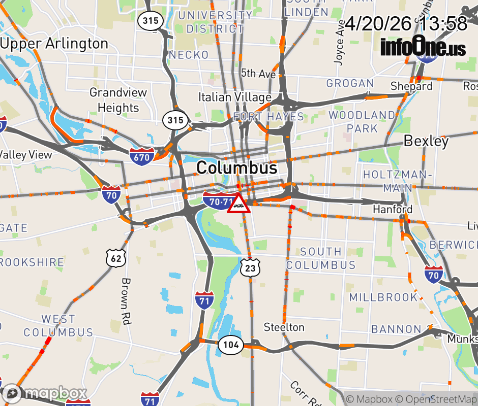 Expect lane closures on I-70 West/I-71 South beyond I-71/I-70 Split, due to a disabled vehicle. ![]() Updated: Mon 4/20/26 1:58 PM EDT |