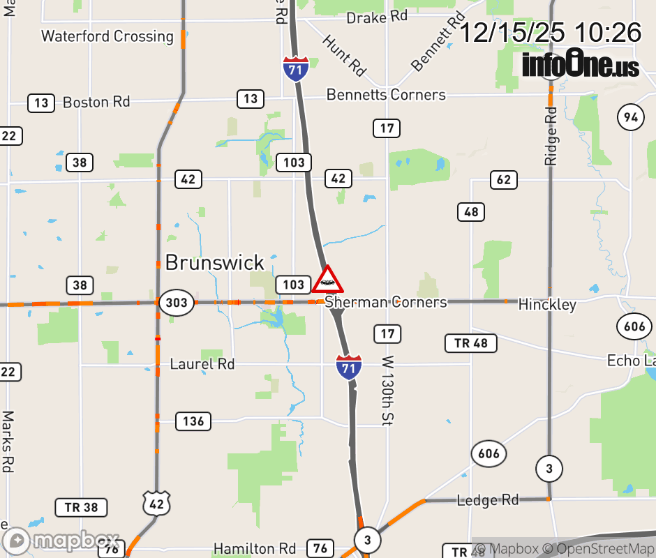 The right shoulder is blocked on I-71 North beyond SR-303, due to a crash. ![]() |